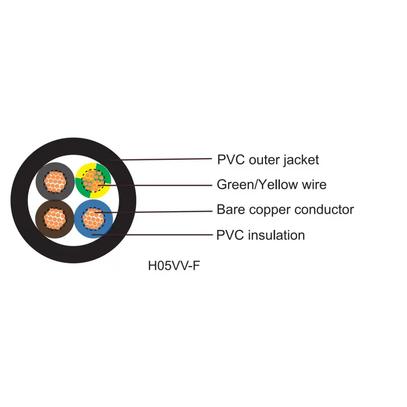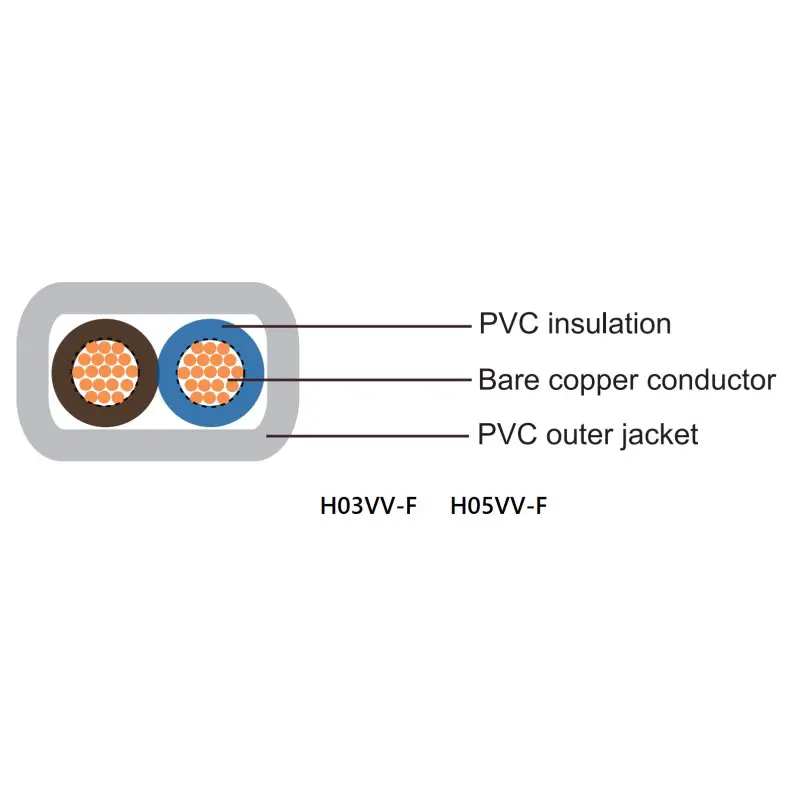 H05VV-F, H05VVH2-F, H03VV-F, H03VVH2-F کلاس 5 کے فائن کاپر کنڈکٹرز، لیڈ فری پی وی سی موصلیت اور میان پر مشتمل ہے۔